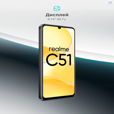 Смартфон realme C51 128GB 4GB NFC Carbon Black камера 50 MP, зарядка 33w