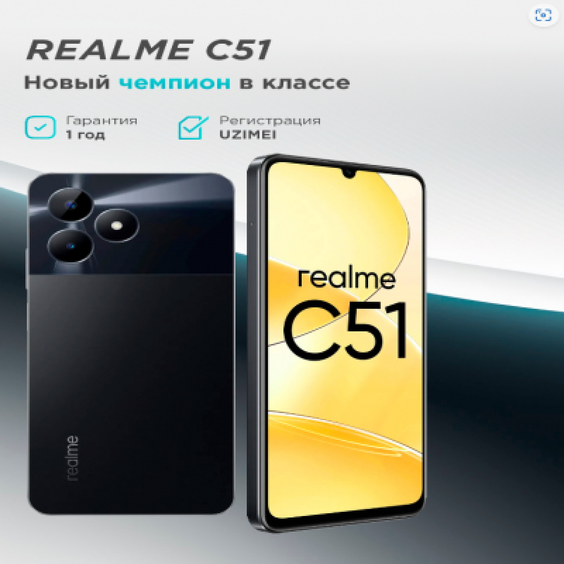 • Realme C51 — это новейший смартфон от компании Realme, который сочетает в себе передовые технологии, мощную производительность и стильный дизайн по доступной цене. Этот смартфон создан для тех, кто ценит качество и инновации.